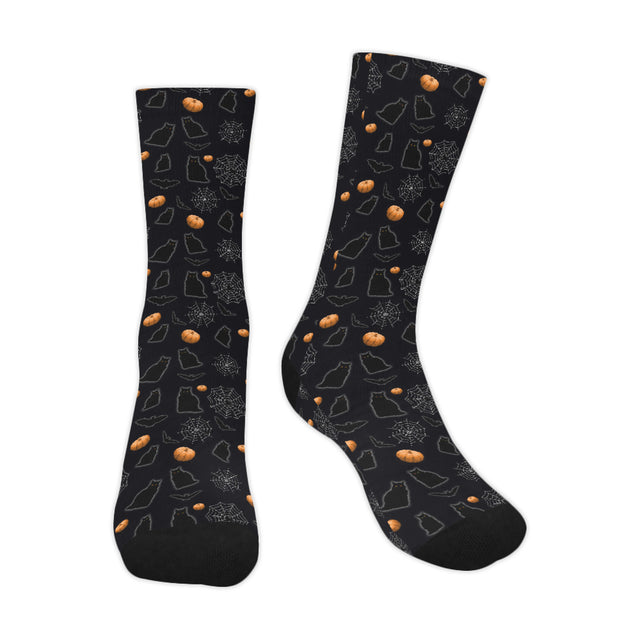 Step into Halloween with bold Black Cat Halloween Socks that bring a daring touch to your spooky style. Featuring sleek black fabric adorned with striking cat motifs, these socks offer comfort and a mischievous charm that electrifies any festive outfit. Perfect for those who want to make a fearless statement this season.
