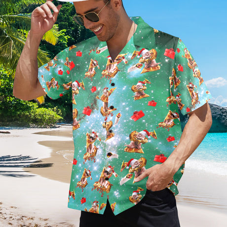 Christmas Space Cat Hawaiian Shirt | Button Up Down Shirt