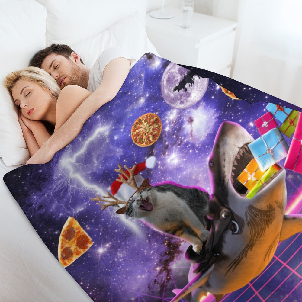 Christmas Cat Shark Throw Blanket