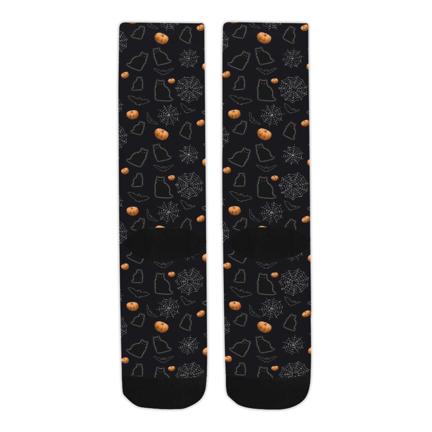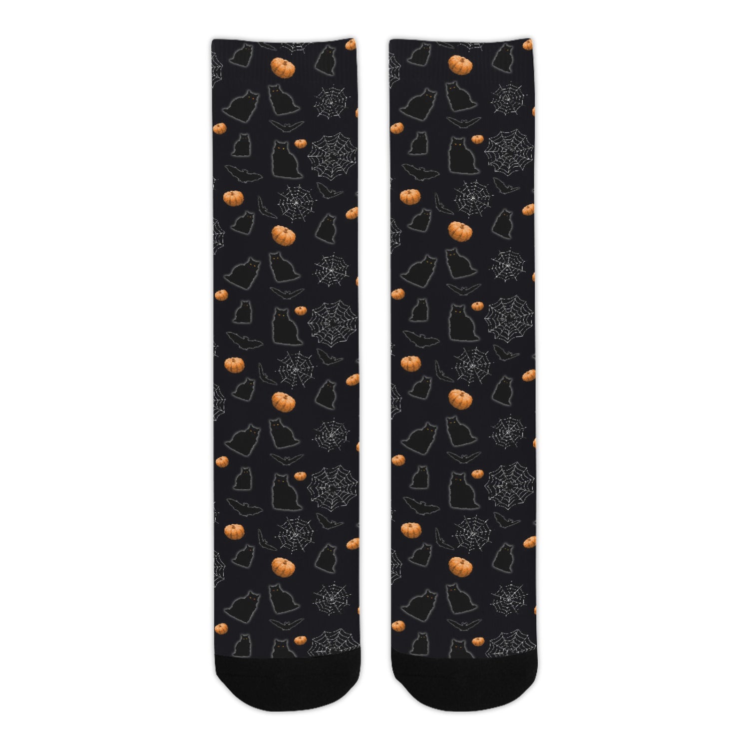 Step into Halloween with bold Black Cat Halloween Socks that bring a daring touch to your spooky style. Featuring sleek black fabric adorned with striking cat motifs, these socks offer comfort and a mischievous charm that electrifies any festive outfit. Perfect for those who want to make a fearless statement this season.