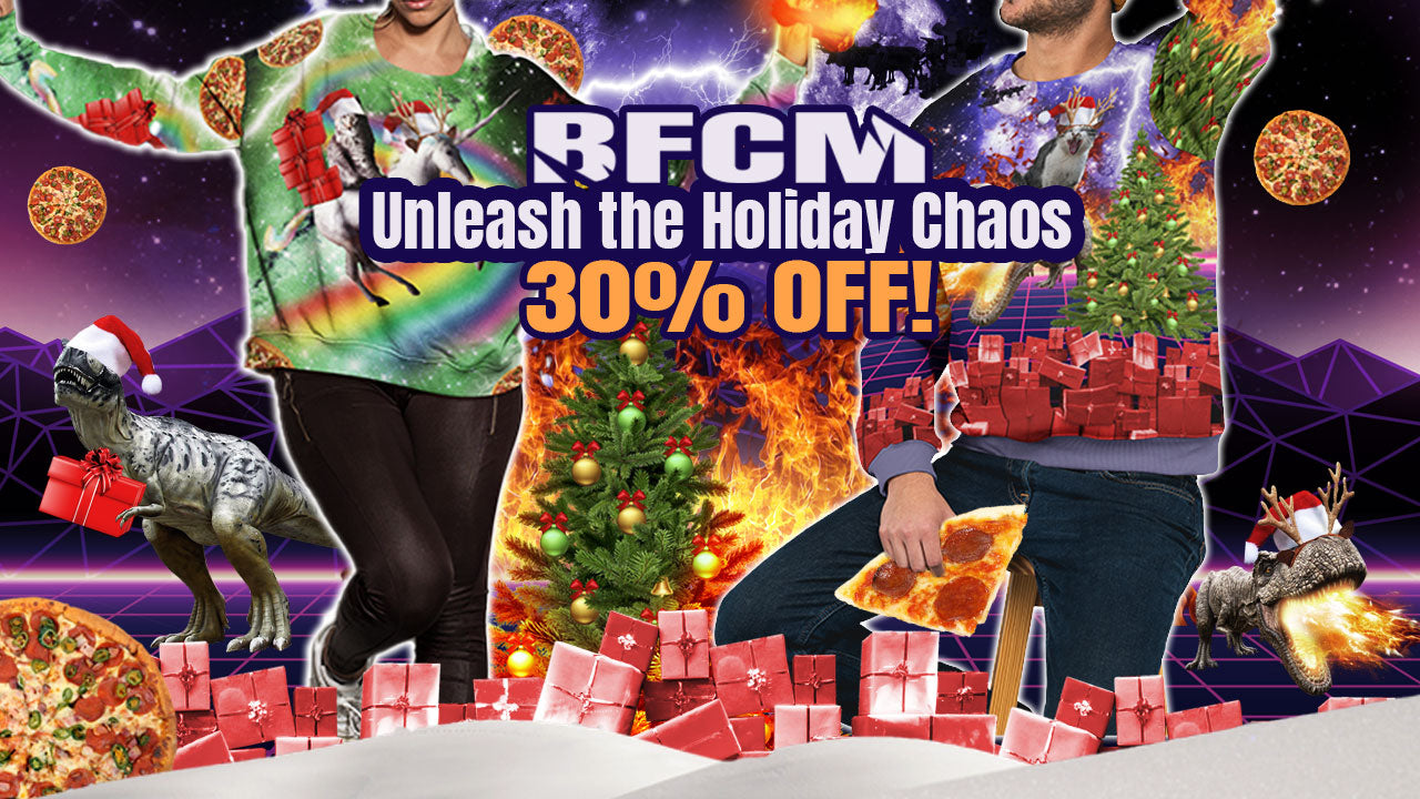 Cat Riding Dinosaur Ugly Christmas Sweater